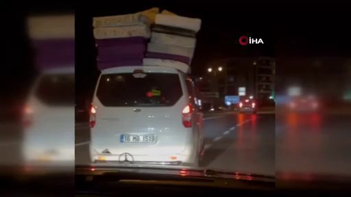 Aracının üzerine yatakları dizdi, trafikte tehlike saçtı