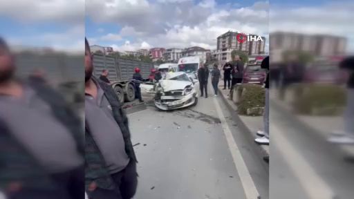 Arnavutköy'de otomobil tıra arkadan çarptı