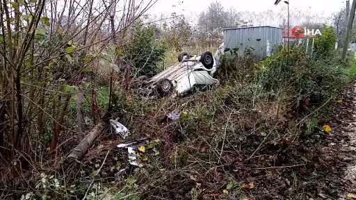 Bursa'nın İnegöl ilçesinde meydana gelen kazada direğe çarpan otomobil tarlaya uçtu; baba ve oğlu yaralandı.