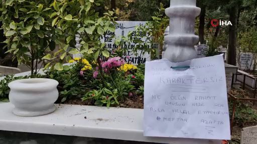 Babasının mezarından çiçek çalan hırsıza not bıraktı