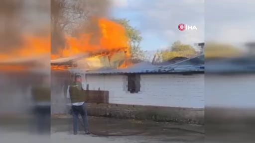 Bursa'nın İnegöl ilçesinde bahçede yakılan ateşin sıçradığı ev ve ahır küle döndü.