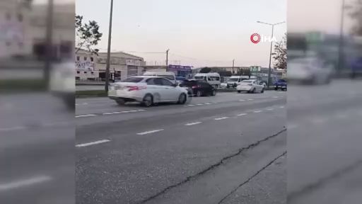 Bursa'da ana yol üzerindeki refüjde kalan başı boş atlar ne yapacağını şaşırdı. Araçların önüne inen atlar, korkunca yine yukarı çıktı.