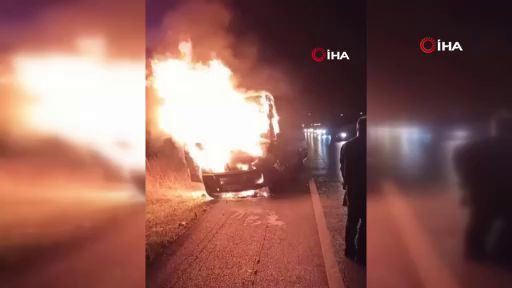 Bursa’da seyir halindeki kamyonet motor kısmından çıkan arıza sonrası alev topuna döndü.