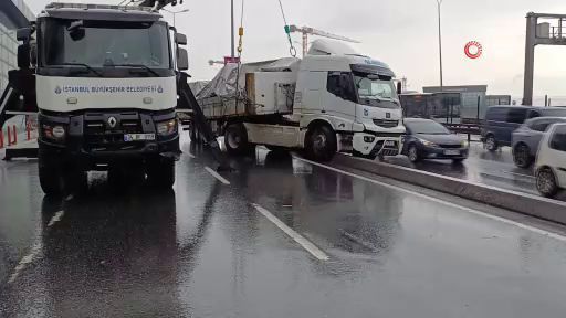 Esenyurt’ta E-5 karayolu Edirne istikameti yan yol üzerinde seyreden tıra arkadan araç çarptı. Tır çarpmanın etkisiyle refüje çıkarken, kaza nedeniyle bölgede yoğun trafik meydana geldi.