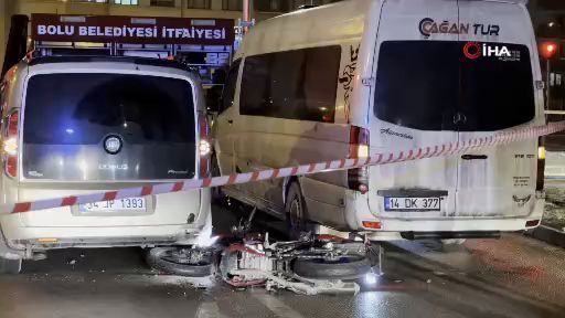 Bolu'da trafik ışıklarında hafif ticari araca çarpan motosiklet sürücüsü, yolda savrularak minibüsün altında kaldı. Meydana gelen kazada 23 yaşındaki motosiklet sürücüsü hayatını kaybetti.