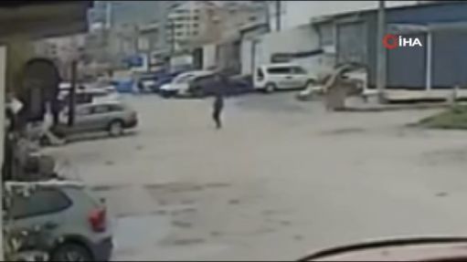Bursa'da otomobille çarpışan motosikletteki kurye havaya fırladı. Kaza anı bir iş yerinin güvenlik kamerasına saniye saniye yansıdı.