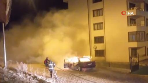 Ardahan’da park halindeki otomobilde yangın çıktı. Otomobilin alev alev yandığı anları çevredekiler cep telefonu kamerasıyla görüntüledi.