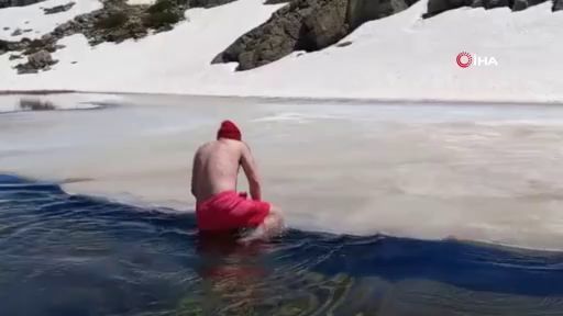 Bursalı dağcılar, Mayıs ayında Uludağ'ın buz tutan gölünde yüzdü. Yaklaşık 2200 metre yükseklikte bulunan, eşsiz manzarasıyla doğa yürüyüşü yapan grupları kendisine hayran bırakan Saklıgöl'e girenler keyif yaparken; görüntüler izleyenleri üşüttü.
