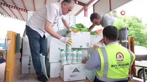 Denizli Büyükşehir Belediyesi, Çal ilçesinde dolu yağışında bağ alanları zarar gördüğü tespit edilen 240 çiftçiye zirai ilaç desteğinde bulunuyor.