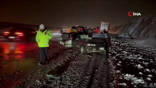 Buzlanan yolda kazaya karışan Muammer Arslantaş, "Bulunduğumuz noktada 5-6 araç birbirine çarptı. Yol zaten buzlu. Çok sayıda maddi hasarlı kaza var" dedi.